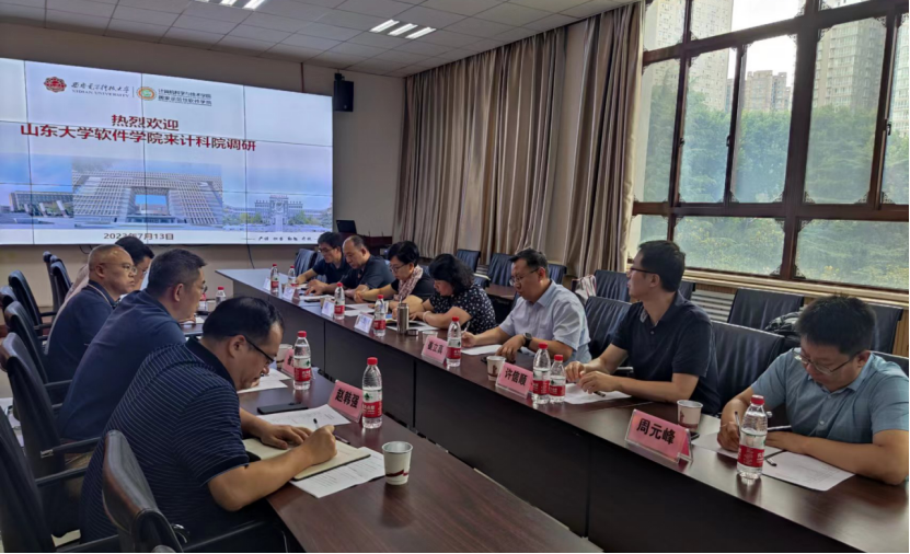 2023年7月13日下午,山东大学软件学院党委书记王秀丽、院长崔立真一行七人来我院调研交流,先对南校区网安大楼学院新办公区进行了现场考察、参观,之后在北校区与学院领导开展交流座谈。