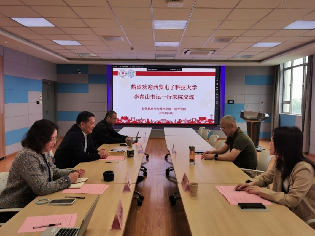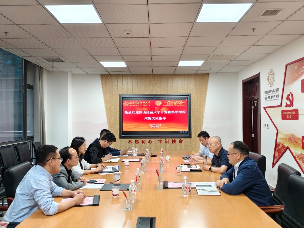 4月29日下午,陕西师范大学计算机科学学院院长姚若侠、党委书记张艳兵带领副院长裴炤、禹勇、董春生来院调研交流。