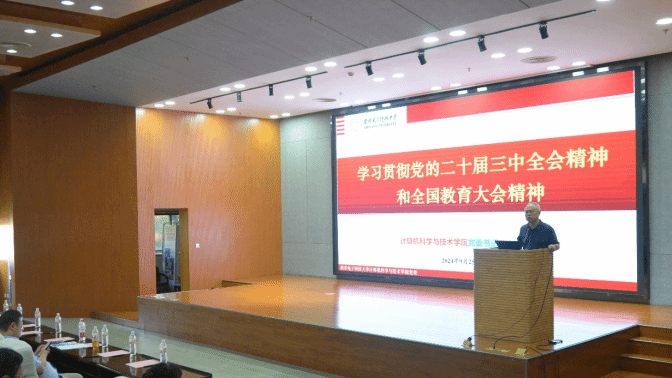学院党委书记李青山传达学习了党的二十届三中全会及全国教育大会精神,回顾了学校和学院党委学习上级相关精神的情况,介绍了学校党委关于教职工学习日的相关要求。李青山谈到,学院将把学习贯彻党的二十届三中全会精神和全国教育大会精神与学科建设、人才培养、科学研究、师资队伍建设、特色化示范性软件学院建设、国际化、校企合作和产教融合等学院年度重点工作紧密结合,强化使命狠抓落实。李青山就学院教职工贯彻落实党的二十届三中全会和全国教育大会精神提出要求:一是提高政治站位,统一思想认识。学院教职工要将学习贯彻党的二十届三中全会及全国教育大会精神作为当前和今后一个时期一项重大政治任务。二是发挥班子带头,深入学习研讨,班子成员先学一步、深学一层,带领全院教职工深入学习、准确理解党的二十届三中全会和全国教育大会精神,开展“教育强国、西电何为”大讨论。三是注重学习实效,促进事业发展。全院教职工要对标上级决策部署、对标一流高校发展态势,认清优势不足,加强工作谋划,找准个人在教育科技人才体制机制一体改革中的实施路径,将学习成果转化为促进一流学院建设的强大力量,奋力谱写教育强国建设崭新篇章。