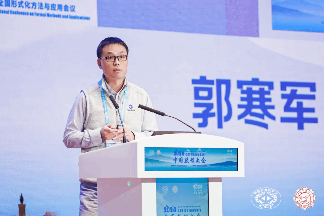由形式化方法专委秘书长吴志林研究员宣布获奖名单,形式化方法专委会主任詹乃军教授作为颁奖嘉宾。