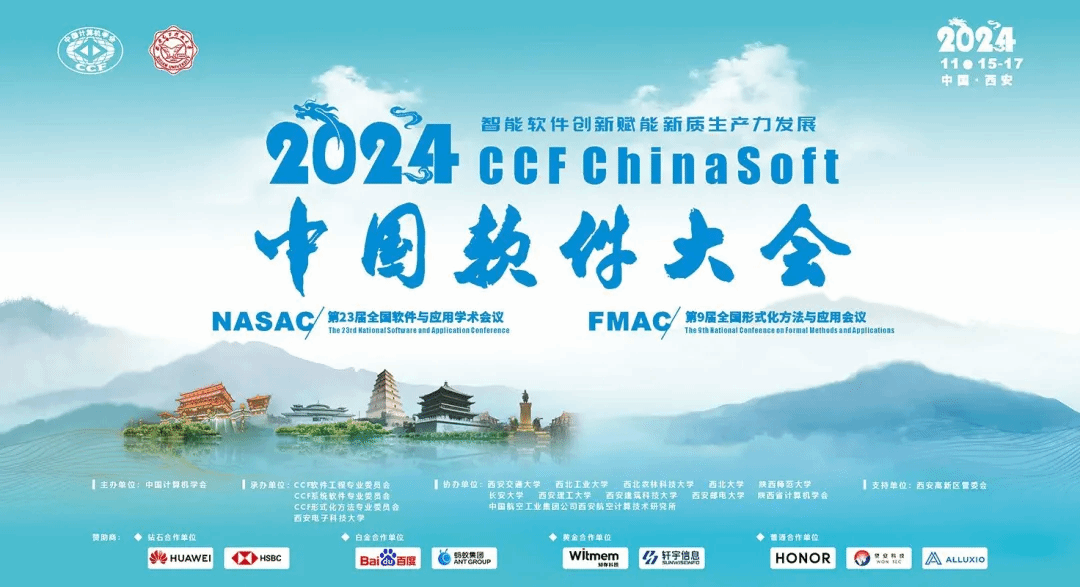 (通讯员 徐悦甡 崔笛 于斌)2024年11月17日下午,2024 CCF中国软件大会(2024 CCF ChinaSoft)在千年古都西安圆满落幕。来自国内外软件相关领域内学者、师生与从业者2400余人齐聚一堂,聚焦智能软件创新赋能新质生产力发展,探讨软件相关领域发展的新思路,展示领域内最新学术研究动态以及技术成果,搭建起软件领域学术界、教育界以及工业界沟通新思想、交流新进展的舞台。