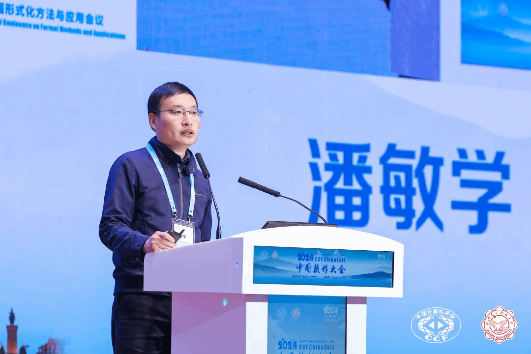 在大会特邀报告环节,上午由CCF形式化方法专委会主任、北京大学詹乃军教授主持。