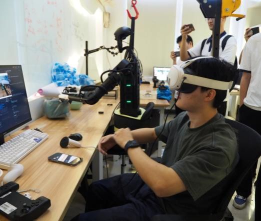 7月8日上午,实践团走进电子科技大学(简称成电),与成电计算机科学与工程学院研究生开展联合主题党日活动,并一同参观电子科技博物馆和相关实验室。在成电行政楼会议室,两校同学围绕“研究生党员先锋模范作用发挥”畅谈深刻感悟,就“党建与科研深度融合”话题展开热烈讨论。随后,在成电计科院硕博士的带领下,实践团参观了计算机科学与工程学院展厅及实验室,成电博士生方凯鹏、刑佑广为同学们演示了人形机器人及机械臂抓取物品的具身智能场景。在博物馆,讲解员引领实践团参观了通信设备、雷达部件、电子元器件、测量仪器、广播电视、计算机软硬件等大量珍贵藏品,重点介绍了成电本科毕设相关展品,以及参与过抗洪、地震救灾工作的激光通信设备和无人机藏品。沿着科技变革脉络,同学们领略了成电人勇于探索、敢于创新、艰苦奋斗的科学精神。