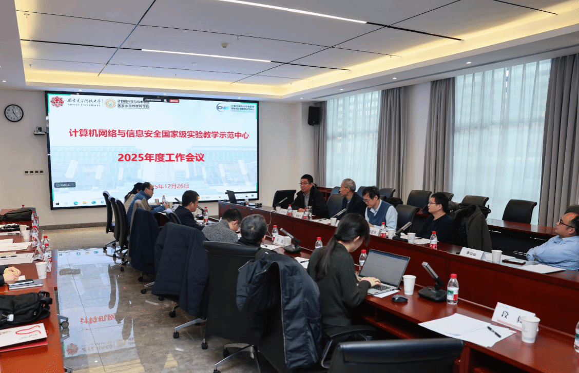 12月26日上午,“计算机网络与信息安全国家级实验教学示范中心2025年度工作会议”在南校区会议中心A121会议室举行。国家级教学名师、西安交通大学桂小林教授,国家级教学名师、陕西师范大学傅钢善教授,西北大学信息科学与技术学院副院长冯筠教授、实验中心主任杨建锋高级工程师,华为高校系统部鲁月华主任,西电教务处副处长兼教师教学发展中心办公室主任杨明磊,电子工程学院副院长任爱锋,kaiyun登录中国入口登录副院长万波、本科教学办公室主任张亚菲及实验教学中心教师代表,共计20余人参加会议。会议由学院副院长兼国家级实验教学中心主任杨力主持。