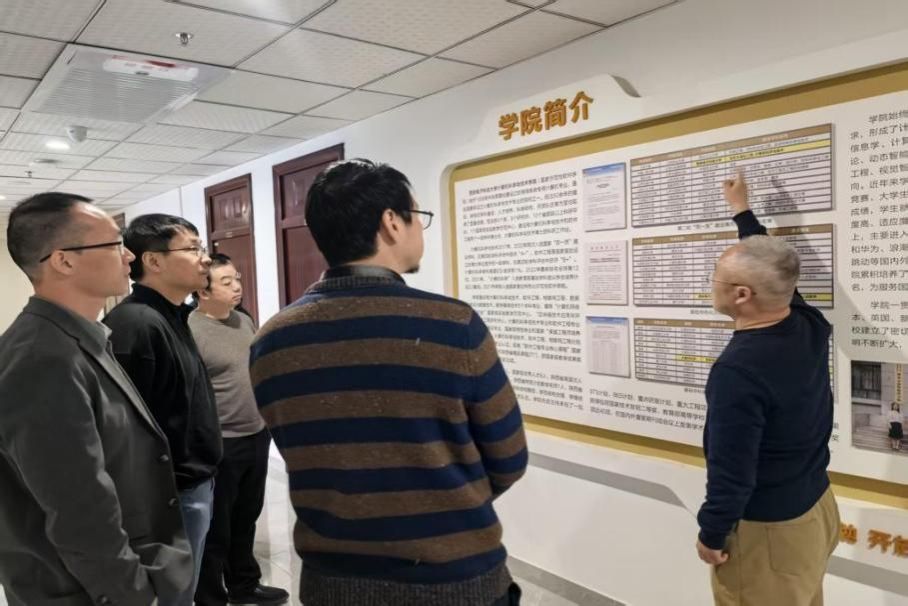 会前,专家一行在学院领导的陪同下,走访了学院形象墙、党建活动室及专业实验室,听取了学院组织架构与发展历程的介绍。专家团详细了解了学院在核心科研方向上的布局及代表性技术成果。