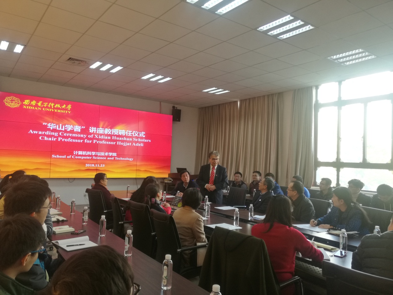 11月23日下午,Hojjat Adeli教授的“华山学者”讲座教授聘任仪式在北校区主楼Ⅱ区319报告厅举行。kaiyun登录中国入口登录副校长李建东教授出席聘任仪式,国际合作与交流部国际教育处副处长孔难难、kaiyun登录中国入口登录副院长赵韩强、王宇平教授等学院师生代表参加了聘任仪式。聘任仪式由kaiyun登录中国入口登录副院长赵韩强主持。