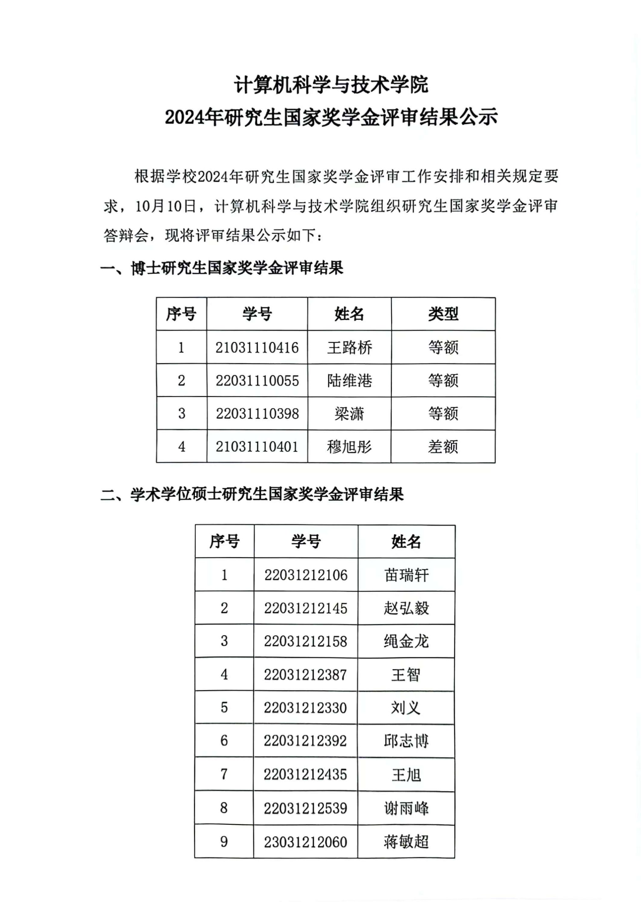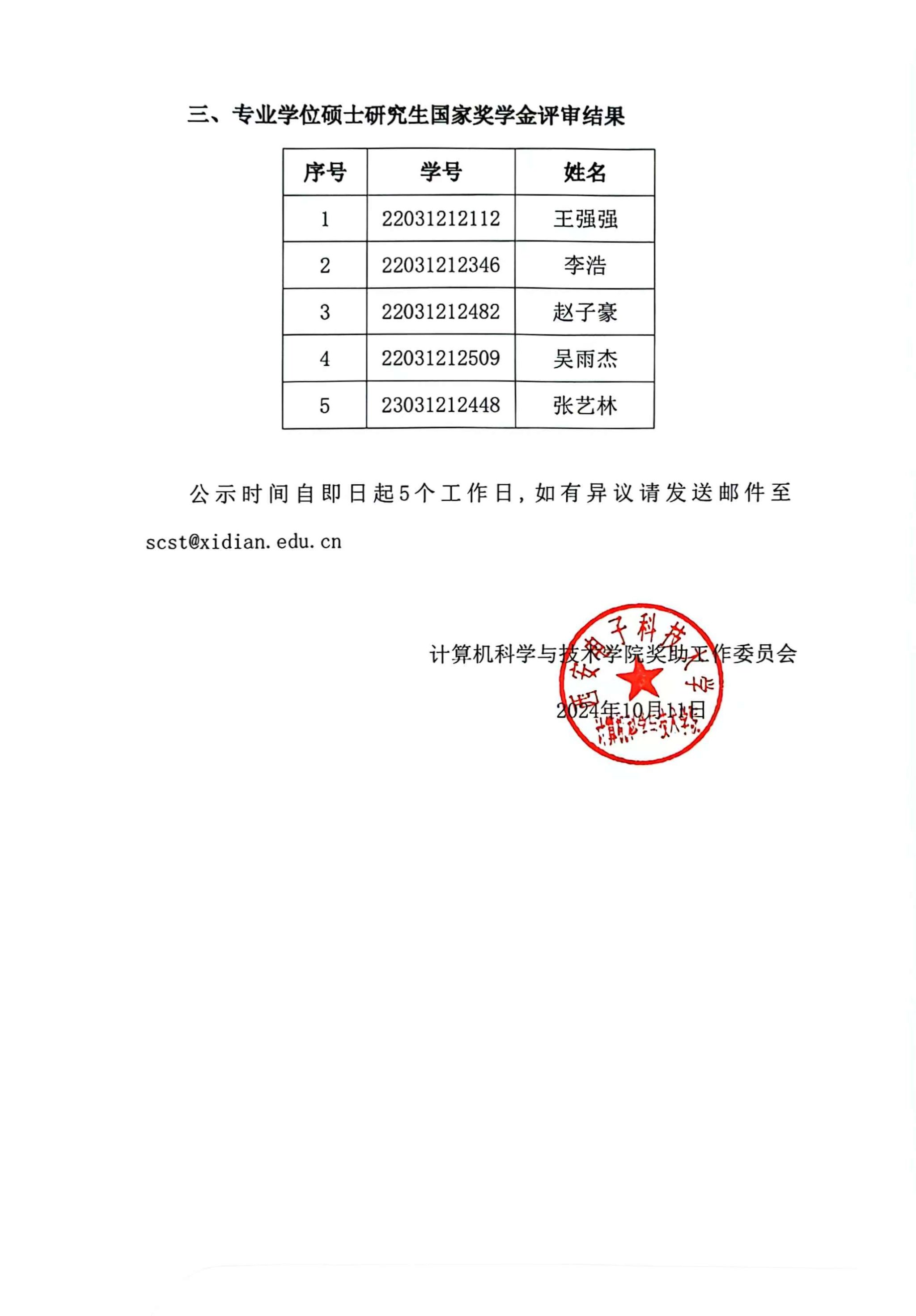 kaiyun登录中国入口登录2024年研究生国家奖学金评审结果公示
