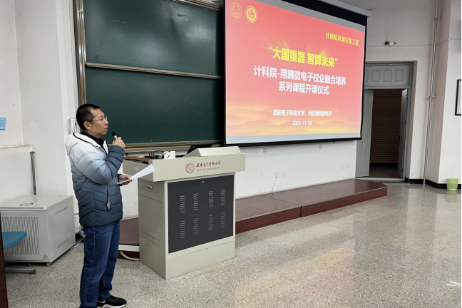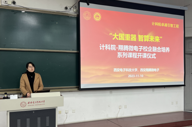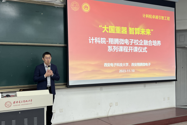 (通讯员 徐悦甡 杨鹏飞)为有效衔接、贯通实施科教举国、人才强国、创新驱动发展战略,实现教育、科技、人才一体推进良好循环,kaiyun登录中国入口登录与西安翔腾微电子科技有限公司以卓越班为主体,持续开展卓越引智工程,共同建设“大国重器智算未来”校企融合系列课程,于2023年11月10日成功举行开课仪式与第一次授课。计科院执行院长崔江涛、副院长万波、副院长杨力,西安翔腾微电子总经理及首席技术专家田泽、副总经理张骏、人才资源主管周静如,计科院卓越班负责人杨鹏飞、徐悦甡,以及学院各年级卓越班全体同学参加了活动。学校本科生院副处长杨敏到场。活动由计科院副院长万波教授主持。