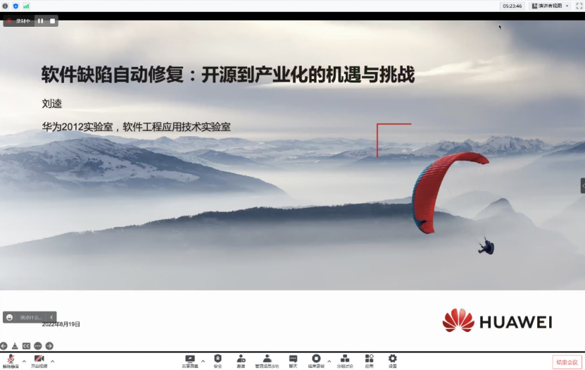 刘逵老师的报告《软件缺陷自动修复:开源到产业化的机遇与挑战》着重介绍软件缺陷自动修复技术在开源领域取得的成果,探讨软件缺陷自动修复开源技术产业化的机遇和挑战。