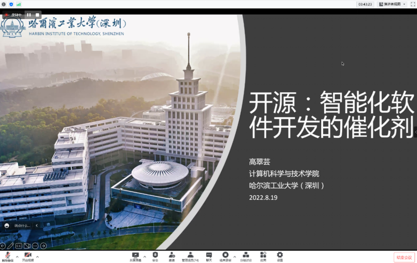 高翠芸老师的报告《开源:智能化软件开发的催化剂》表明源代码在智能化软件开发中的重要性,并围绕着在智能化软件开发方面的开源进展,介绍开源在智能化软件开发的挑战和意义。