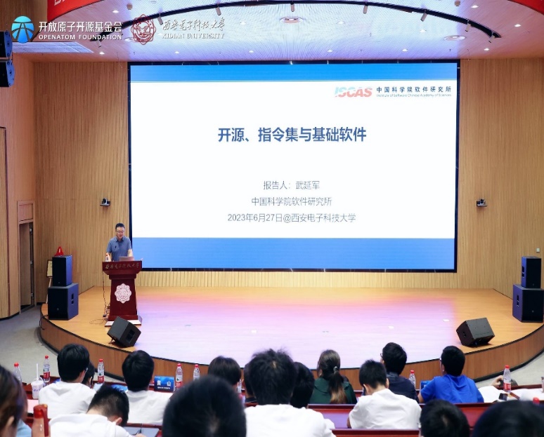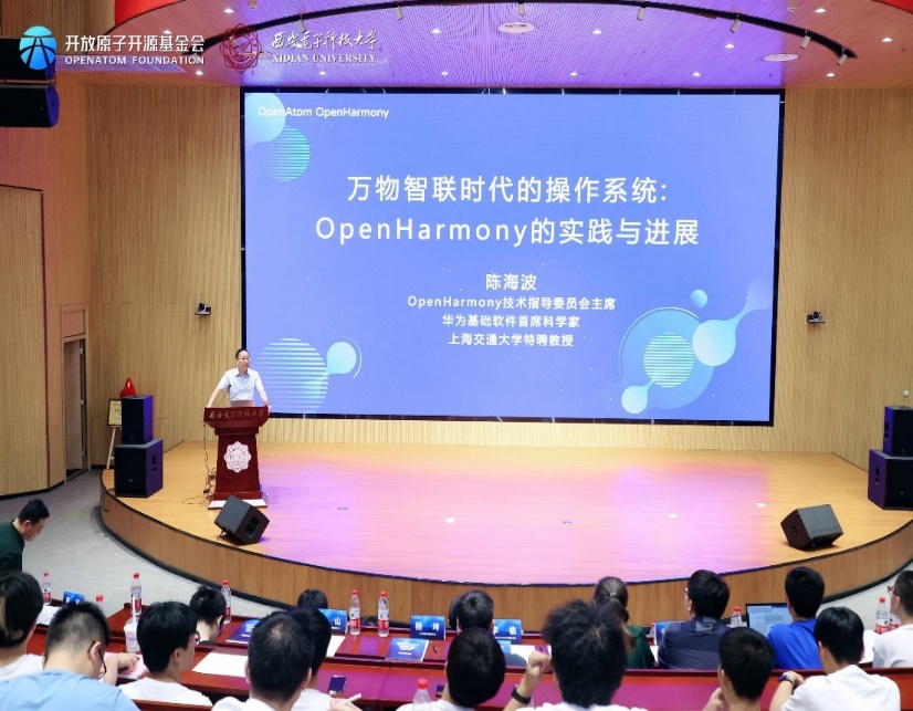 仪式后,陈海波和武延军两位老师代表OpenHarmony TSC专家向kaiyun登录中国入口登录的师生们做了OpenHarmony相关主题的技术报告。第二阶段会议由kaiyun登录中国入口登录副院长李瑞主持。