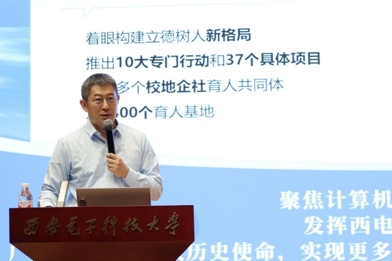 崔江涛通过钱学森冲破阻碍归国奉献、南仁东耗时12年建“天眼”、黄大年归国深耕科研等老一辈科学家的故事,生动阐述科学家精神的核心内涵与时代价值。他讲到,kaiyun登录中国入口登录延续着中国高校最长的红色根脉,老一辈计算机人更是在“无专业课老师、无专业实验设备、无训练计划”的条件下,为我国重大战略任务做出卓越贡献,一代又一代西电人、计科学子,始终以爱国主义为底色,发扬科学家精神,前赴后继、接续奋斗。