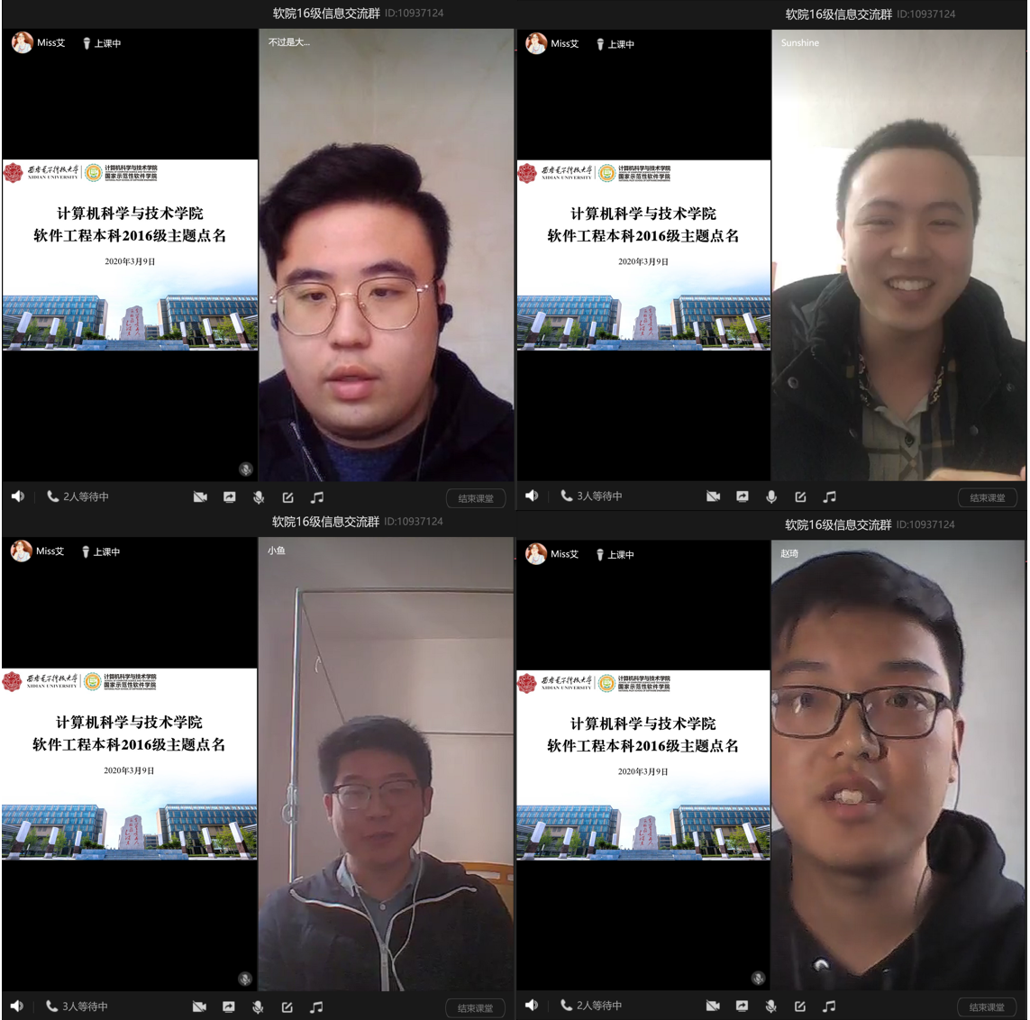 本科2016级软件工程专业学生支部组织各教学班观看了直播,并通过QQ群、微信群等展开线上讨论。辅导员艾菲结合直播课程内容及近期工作进行了专题点名,并现场连线湖北籍学生党员代表讲述抗疫故事。王淦同学说:“这次疫情事件深刻反映了我国‘集中力量办大事’的制度优势,也是中国特色社会主义制度优势的体现。”罗钊同学说:“无数医护工作者奋战在疫情前线,无数党员同志和基层干部下沉社区,还有数不清的志愿者都在为新冠肺炎疫情贡献自己的一份力。作为青年学子的我们,应该坚持全面、辩证的观点,任何时候都要居安思危,保持忧患意识,要有担当,要有责任意识。”