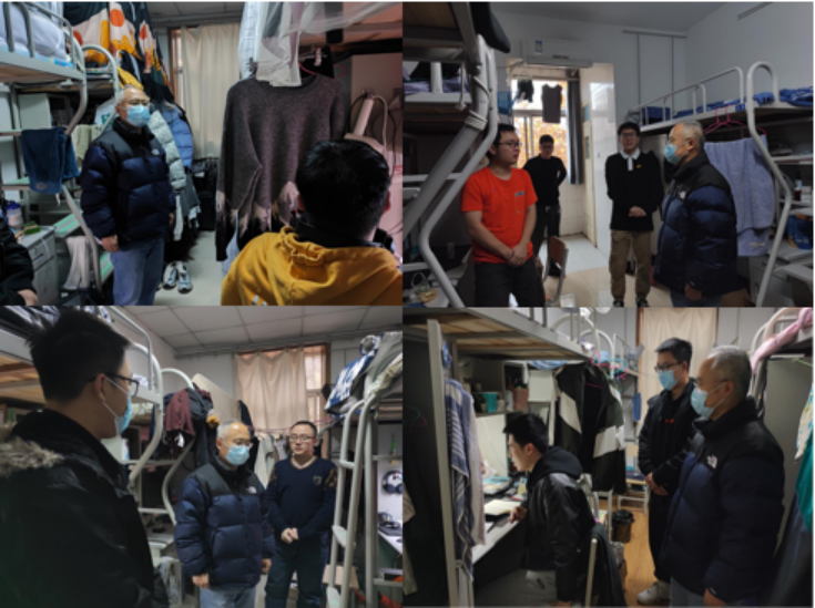 11月27日,学院党委书记李青山、学院党委副书记张莹莹分别带队,与辅导员一起走访了南、北校区研究生和本科生宿舍,了解学生学习生活情况,交流思想,特别就学业、生活、就业等问题进行沟通交流。