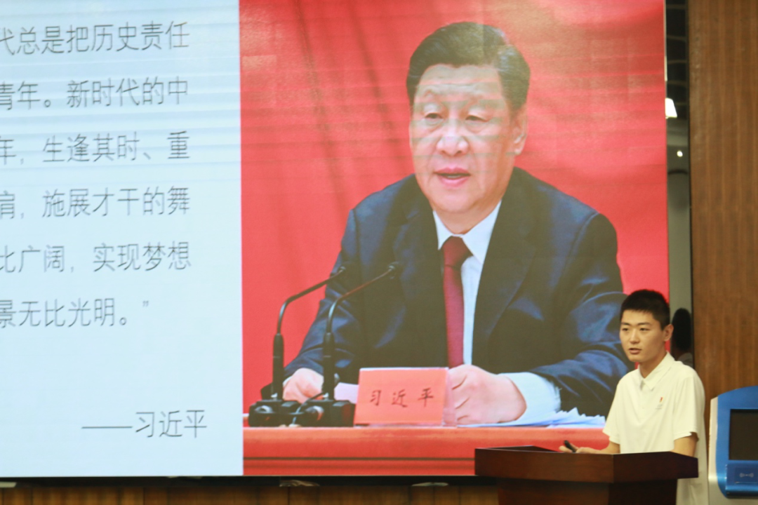 首先由来自电子工程学院的研究生曲嘉轩进行宣讲,他从李大钊先生的《青春》出发,讲述了近代青年在党的领导下对中国革命和国家建设做出的巨大贡献,指出了习近平总书记对中国青年的肯定与厚望。后又结合西安发生新冠疫情的所见所想与自身志愿服务经历,鼓舞大家继续砥砺奋进、发光发热,不愧对习近平总书记的殷殷嘱托、不愧对党和人民,为中华民族的发展和祖国建设做出自己的贡献。