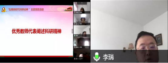 随后,本科生党员谈论了自己对科研工作的期待和向往,也展示了自己对科研工作的认识。本科生党员王纪科提出,作为一个本科生,在听取了李瑞老师的发言后,明白做科研不是盲目追求热门,而应该结合自己的能力和兴趣,选择合适的科研方向,并且在接下来的日子里也要尽快提高自己的专业素养,才能为今后打好科研基础;本科生党员屈家鼎也谈到,大学的课程和生活,使他对科研这方面了解越来越多,并且觉得科研是一项非常伟大而又艰巨的事业,科研需要的不仅仅是想法,更需要的是知识的积累、能力的提升以及对科研的热爱。
