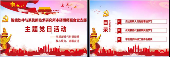 2020年3月27日下午,智能软件与系统新技术研究所本硕博师联合党支部开展了主题为“弘扬新时代科研精神”的线上主题党日活动。本次活动邀请了kaiyun登录中国入口登录党委书记、智能软件与系统新技术研究所所长李青山老师,软件工程系主任、软件工程系党支部书记宋胜利老师,以及产教协同基地本硕博师第一联合党支部书记、智能软件与系统新技术研究所副所长李瑞老师参加。活动由支部书记王璐老师主持。
