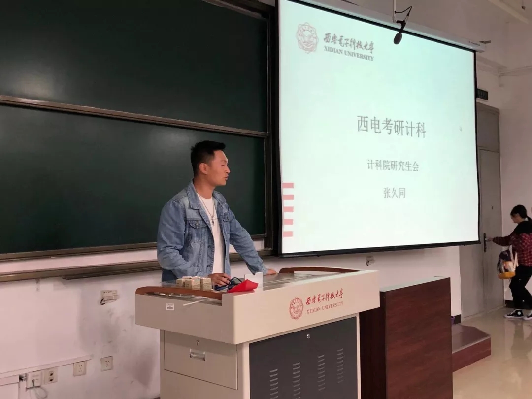 跨专业考入西电计科学院的陶知森,从考研的准备、初试、复试、经验四个方面详细的向同学们分享他的考研心得。他以自己的考研作息为例,鼓励大家踏踏实实的稳步向前。他认为,经验固然重要,但大家更多要结合个人实际情况,把握好自己的节奏,持之以恒、坚持到底。他说:“要放平心态,不骄不躁,学会与自己相处,不要自我感动,既要顶得住诱惑,也要耐得住寂寞。”