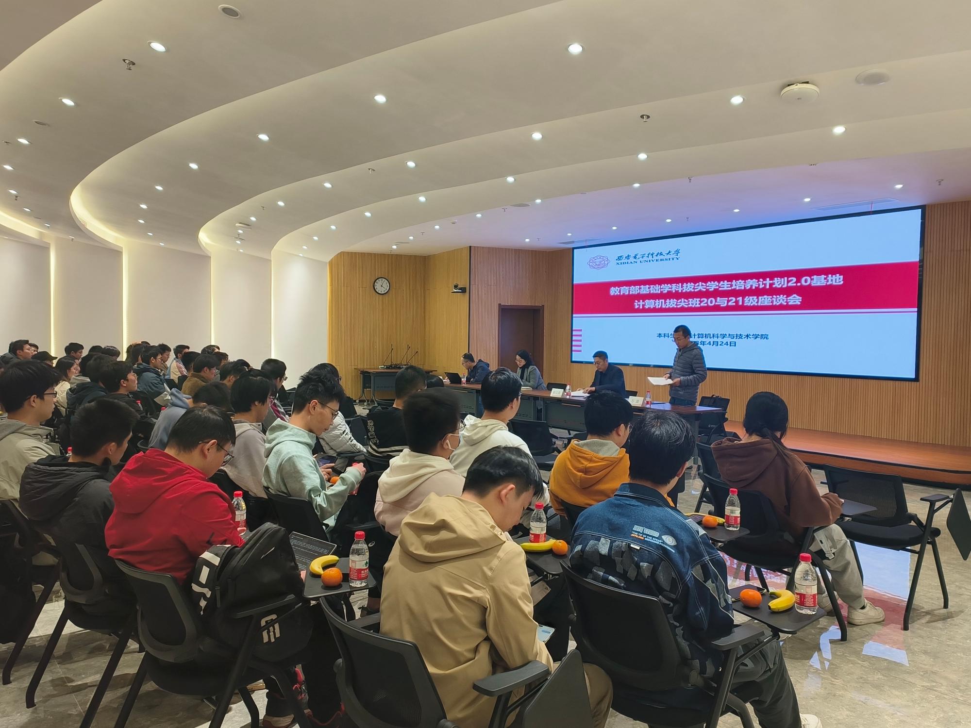 (通讯员 王小兵)为贯彻落实“全面提高人才自主培养质量,着力造就拔尖创新人才”二十大精神,根据学校第十三次党代会拔尖创新人才培养工作部署,4月24日下午4点,计算机拔尖班2020级与2021级学生座谈会在南校区网安大楼会议中心103报告厅召开。本科生院副处长杨敏,kaiyun登录中国入口登录执行院长崔江涛,副院长万波,计算机拔尖班负责人王小兵参加。本次座谈会由kaiyun登录中国入口登录与本科生院共同举办,旨在深入调研拔尖班特性需求,全面落实立德树人根本任务,推进学校拔尖创新人才培养工作,提高人才自主培养质量,打造“不设天花板”的拔尖人才培养空间。