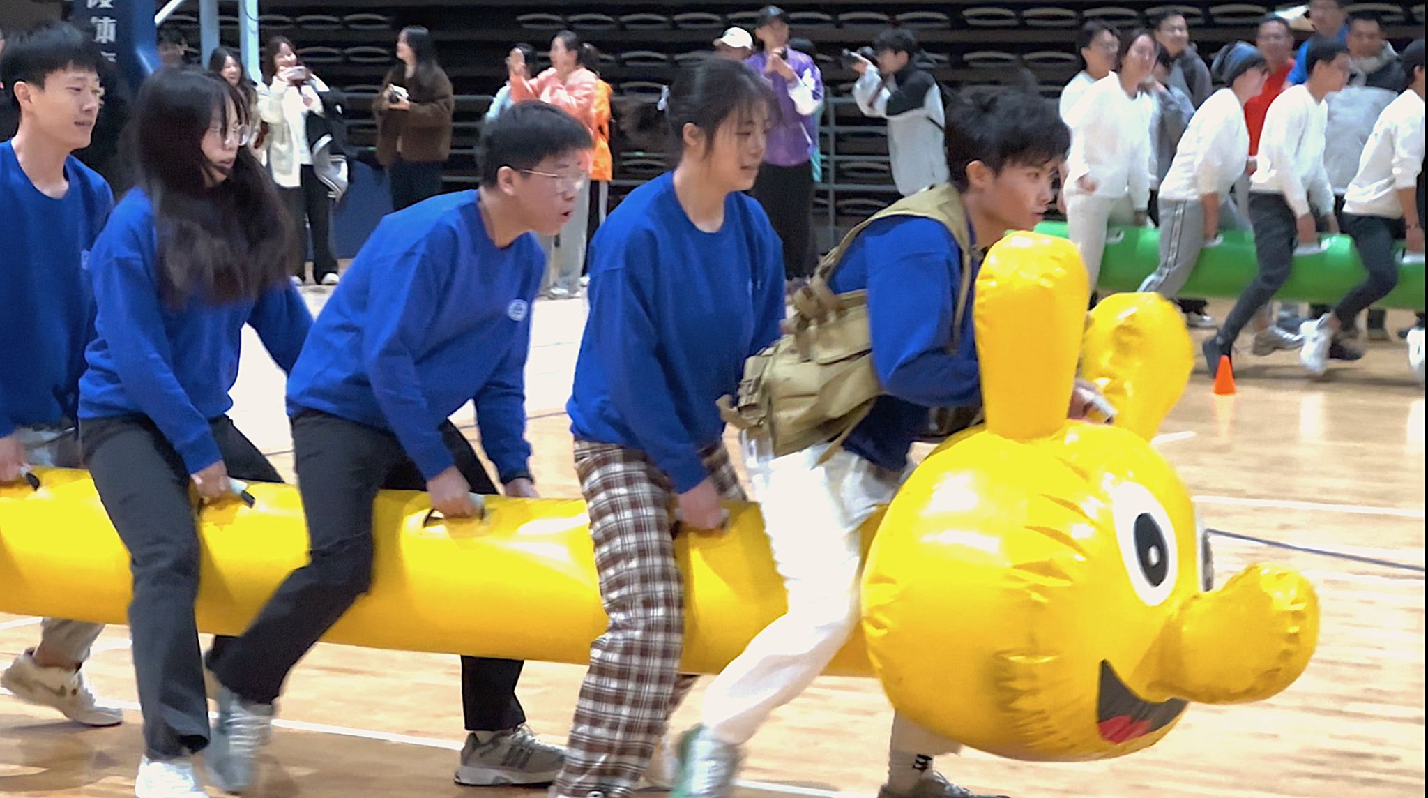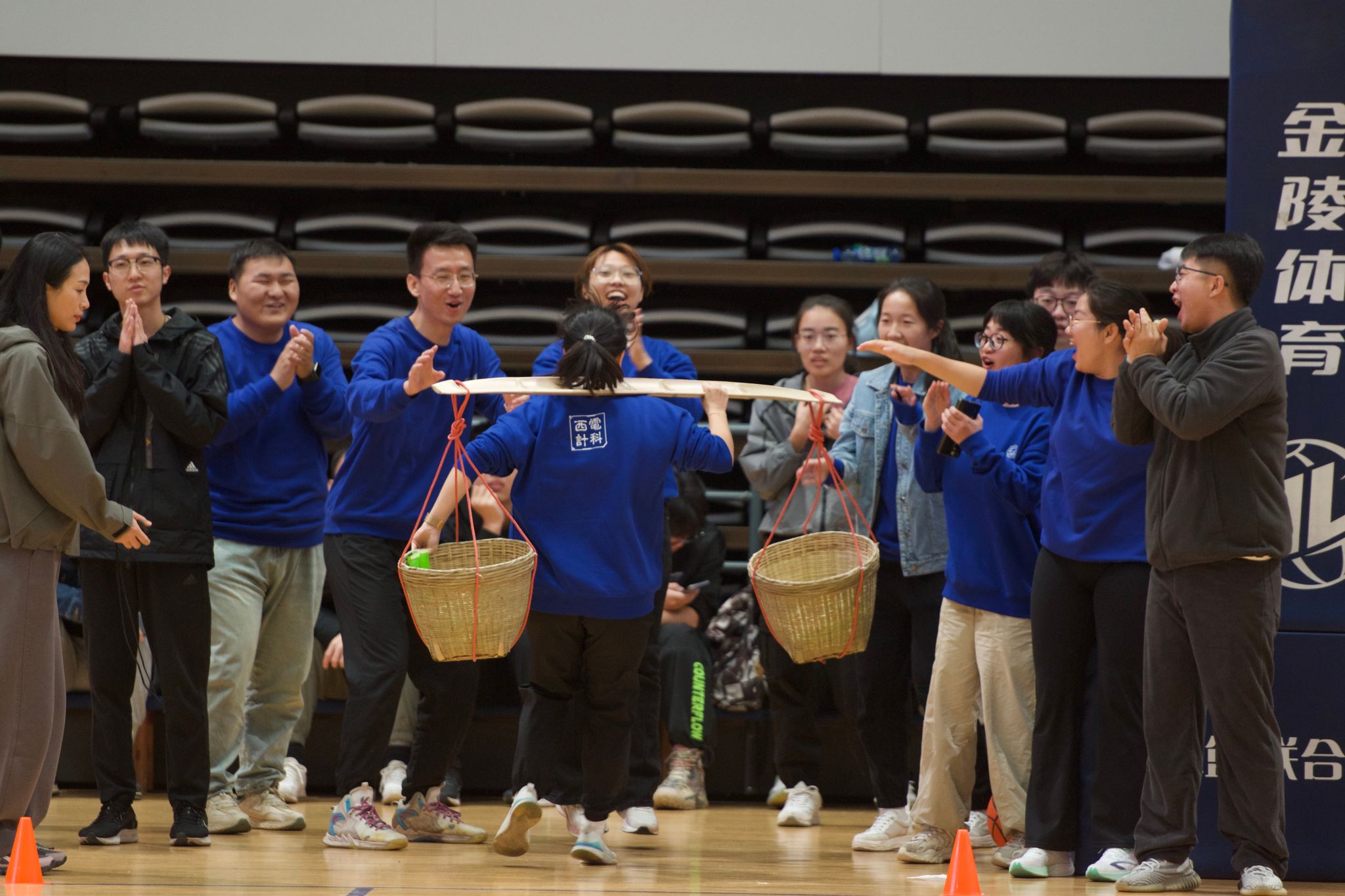 本次研究生运动会设置三人制篮球联赛、半部电台起家、长征路上办学、锻炼铁的筋骨、红军的扁担、南泥湾大丰收、胜利大会师、齐心协力等8个比赛项目。项目结合校史设置,在比赛项目中,计科师生领悟革命先辈团结奋斗、勇往直前的拼搏精神和家国情怀,在运动中传承红色基因,赓续红色血脉,感悟体育精神,激发奋斗豪情,展现了良好风貌。