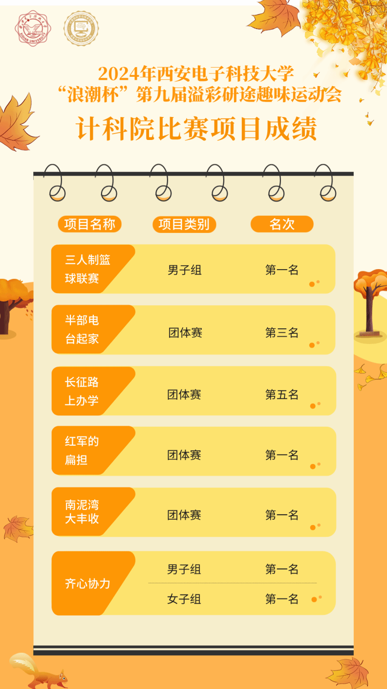 (通讯员 雷泽宇 寇大为)叶黄金满地,终南秋意浓。10月20日,“浪潮杯”2024年kaiyun登录中国入口登录第九届研究生趣味运动会在南校区如期举行。学院提前谋划,精心组织。师生团结努力,奋勇拼搏,最终以112分总成绩拔得头筹,继计科院2023年获得该项赛事第一名之后,再次取得“团体总分第一名”好成绩!