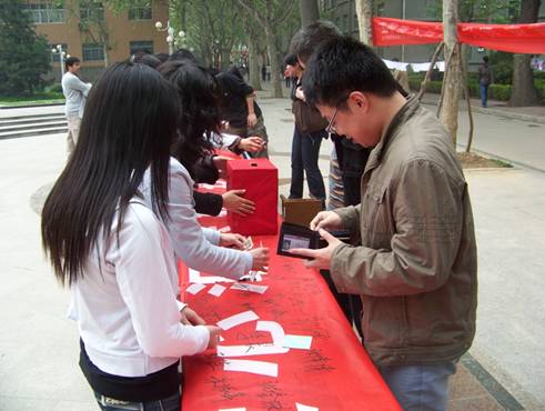 捐款现场,同学们积极献上自己的爱心