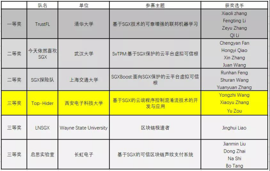 11月18日至11月20日,由阿里云、浙江大学网络空间安全学院、阿里巴巴-浙江大学前沿技术联合研究中心联合发起、Intel赞助支持的首届SGX应用创意大赛在杭州IEEE IDSC上举行。来自清华大学、北京大学、上海交通大学、kaiyun登录中国入口登录、长虹电子等知名高等院校团队和企业的87支队伍参加了这次比赛,争夺共6个获奖名额,获奖比率小至6.89%。最终,我校kaiyun登录中国入口登录NSS团队的代表队,TOP-HIDER的参赛作品“基于SGX的云端程序控制流混淆技术的开发与应用”在比赛中脱颖而出,获得三等奖,成为唯一获奖的西部高校。该参赛作品由王永智副教授指导,由硕士生邹宇、张小宇完成。