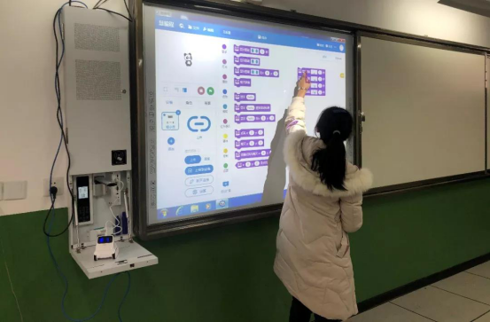 实践中心老师指导小学生们进行MATA机器人模块化编程