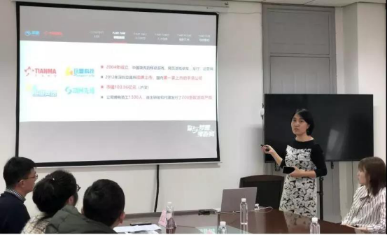 在座谈环节,获奖学生踊跃发言,介绍自己的个人情况以及对互联网行业及掌趣科技的看法。程莉等公司代表与学生进行了热烈的互动交流。
