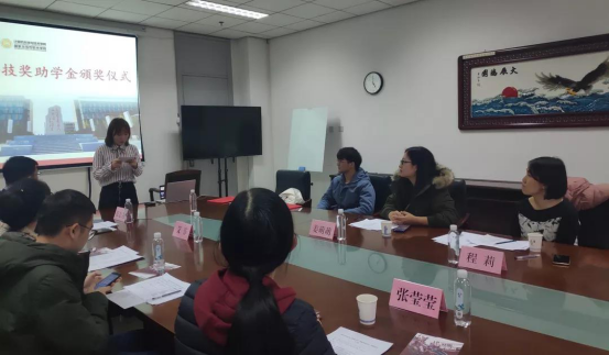 kaiyun登录中国入口登录2019年度“掌趣奖助金”颁奖仪式于日前在南校区G楼514会议室举行。北京掌趣科技集团人力资源总裁程莉,kaiyun登录中国入口登录党委副书记张莹莹出席了颁奖仪式。学院获得掌趣奖学金和助学金的15名本科、研究生同学和相关辅导员参加了颁奖仪式。