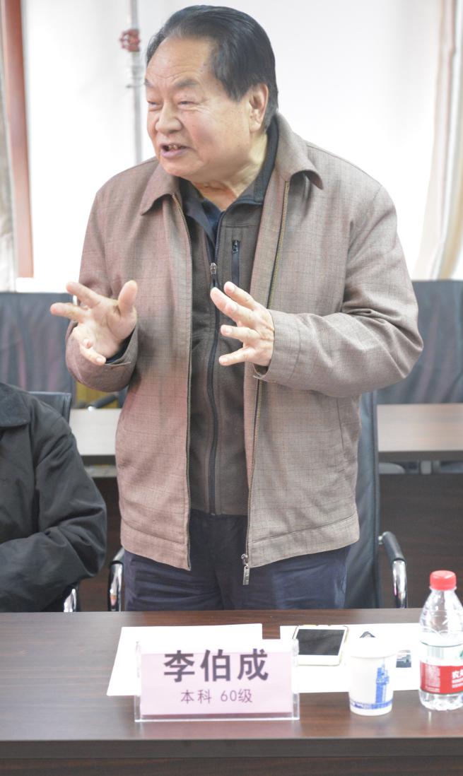 本科60级院友李伯成肯定了学校和学院在几任领导的带领下取得的成绩,通过90周年校庆活动,加强与海内外院友联系,为母校贡献力量。