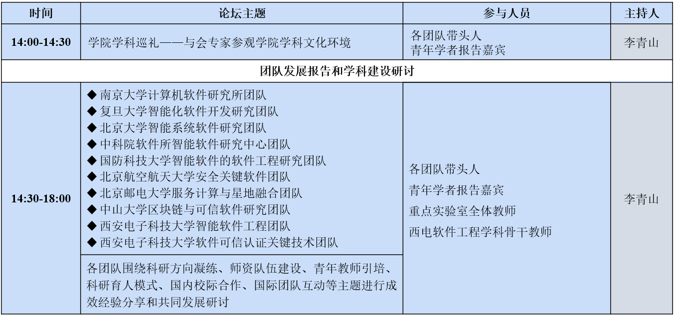 第四届软件工程学术进展与学科建设研讨会暨2023年重点实验室青年学者论坛将于2023年11月24日~25日在kaiyun登录中国入口登录南校区举办。由依托kaiyun登录中国入口登录(示范性软件学院)建设的西安市智能软件工程重点实验室(陕西省智能软件工程创新团队)和西安市软件可信认证关键技术重点实验室(陕西省安全攸关智能软件创新团队)联合承办。本届论坛在往届举办经验的基础上,创新论坛模式,以软件工程和系统软件领域校际学科科研团队的交流融通和资源共享为切入点,采用青年学者学术进展专题报告与团队组织建设论坛相结合的组织模式展开,以更好地推进有组织的学科建设、有组织的科研和有组织的团队建设成果交流和共同发展。论坛邀请了包括北京大学、南京大学、复旦大学、中国科学院软件研究所、国防科技大学、北京航空航天大学、北京邮电大学、中山大学等软件工程和系统软件领域国内有代表性有特色有优势的学科和科研团队与学校软件工程学科相关团队一起进行交流和研讨。青年学者论坛将主要以专题报告的形式带来学术前沿研究进展和成果分享;学科论坛中各团队带头人或代表将结合各自所在学校和学科特色,分享其所指导的团队在科研方向凝练、师资队伍建设、青年教师引培、科研育人模式、国内校际合作、国际团队互动等主题进行成效经验分享和共同发展研讨。