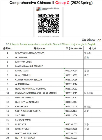 全面梳理,重点关注。目前计算机科学与技术专业2019级留学生共有24人,分布在9个国家,面对疫情特殊时期以及留学生回国问题,会同国合部第一时间发送了线上学习情况的调查问卷,调研学生们所处的位置状态、进行线上学习的设备情况以及学生所处地区的时差等问题。获知8个学生在国外的消息后,仔细询问每个学生的情况,了解他们的想法,打消他们的担忧。建立全体任课教师和留学生的微信群,提前公布中英文课表,发布学在西电平台使用手册英文版,及时解答学生提出的各类问题。