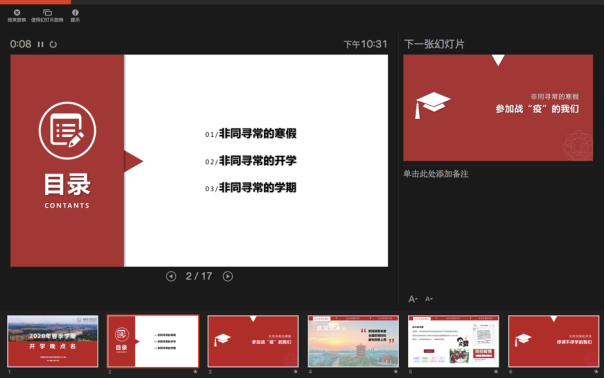 当晚,kaiyun登录中国入口登录各年级分别通过不同平台,同时组织了线上“晚点名”,开展抗“疫”教育与开学动员教育工作。本科2016级辅导员艾菲、郭禹宏老师、2017级辅导员李栋老师通过“雨课堂”、腾讯群视频等进行了直播。通过主题班会,计科院各年级落实落细接下来的防控任务,组织班级骨干、学生党员主动担当,形成网格化管理服务体系;就同学们在家配合做好防控工作、参加在线学习提出具体要求,特别是应对新学期的新任务做好准备。本科2016级是毕业年级,辅导员老师在班会上叮嘱同学们充分利用好大学最后一个学期的时间,“顺利完成本科学业,明确个人发展方向,努力争取深造或就业机会,寻找适合自己的工作”。