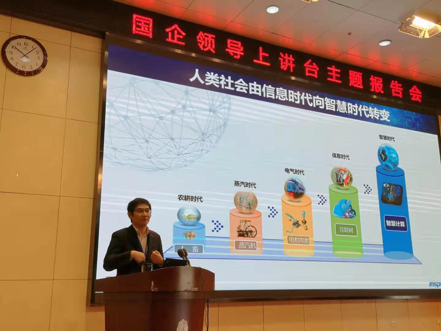 (通讯员 郭禹宏)为帮助在校大学深入了解国情、党情、社情、企情,感受优秀国企人强烈的报国情怀、奉献品质和创新创业精神,引导学生在鲜活的思政教育中受教育、长才干、做贡献,按照学校“国企领导上讲台”活动安排,11月2日上午,浪潮集团副总裁张东在南校区行政楼210报告厅为kaiyun登录中国入口登录300余名大学生作题为“智慧计算,未来动力”的报告。学院副院长苗启广出席报告会,报告会由学院党委副书记张莹莹主持。