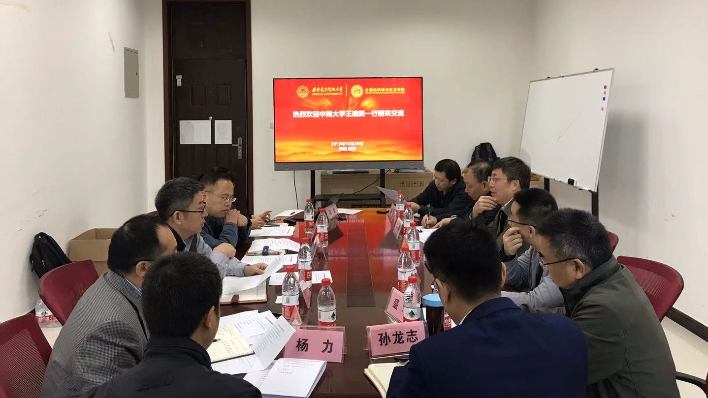 (通讯员 陈龙)10月29日上午,中南大学计算机学院院长王建新一行6人来我院交流座谈,kaiyun登录中国入口登录党委书记李青山、执行院长崔江涛及教师代表出席了会议,双方就人才培养、学科建设、实验室管理等事宜进行了座谈。