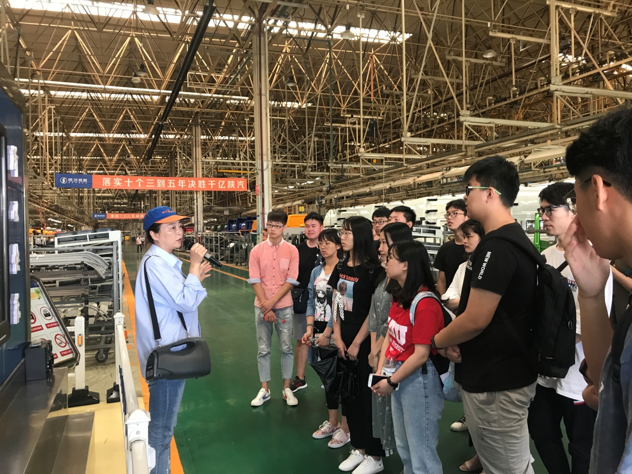 陕西汽车控股集团有限公司组织人事部李亚洲同志介绍了陕西汽车控股集团有限公司的发展历程、企业概况及远景蓝图。随后,他带领大家参观了陕汽展厅以及汽车总装配厂,零距离接触陕汽重卡旗下产品,同学们还在展厅系统了解了陕汽基层党建工作理念。