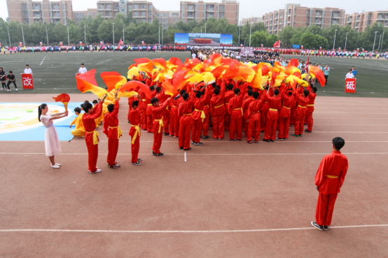 学生方阵由116名同学组成,前后各8名同学穿黄色服装列成两排,中间100名穿红色服装的同学构成10x10的队列。方阵表演由数字倒计时开始,计科学子通过重新演绎北京奥运会经典场景,向奥林匹克体育精神致敬;同学们通过快速准确变化手中的彩色扇子,构成了西电kaiyun登录中国入口登录首字母XDCST,整齐划一的口号响彻运动场:青春无畏,逐梦扬威,团结拼搏,争创佳绩!随后,方阵前后16位同学展开横幅构成一个巨大的计科院院徽图案,此时,中间同学们迅速跑动紧紧围成一团,一名女同学手持火炬走向红色方阵点燃圆形队列,瞬时队列化为熊熊燃烧的火焰,象征着西电计科学子传承红色基因、勇于拼搏奋进的精神。方阵表演创意十足、寓意丰富,赢得了在场观众的阵阵喝彩。