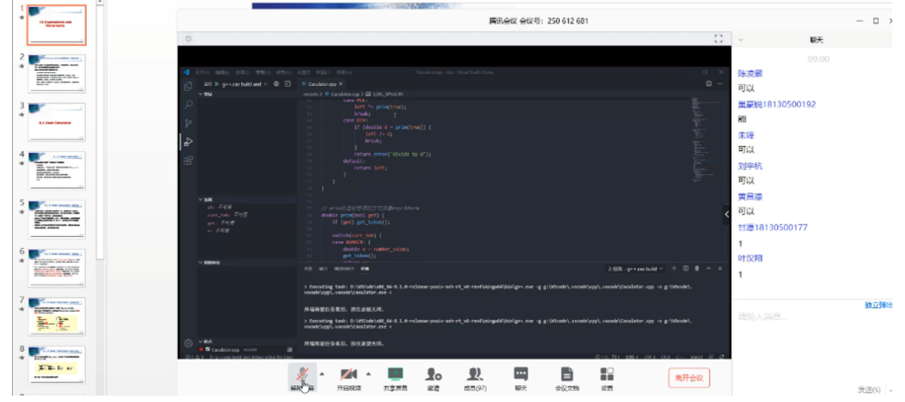 课堂实时互动:褚老师使用腾讯会议搭建了课堂实时互动平台,同学们可以自由发言、共享屏幕或者在留言区发言,表达自己的思路,提出不理解的问题等。老师则及时为同学们解答问题,争取课堂上不留疑惑。