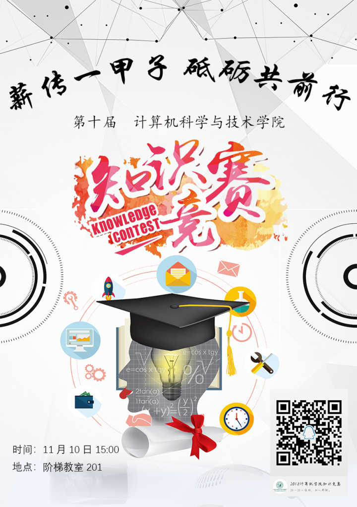 kaiyun登录中国入口登录第十届知识竞赛来啦!本届知识竞赛以“薪传一甲子,砥砺共前行”为主题,旨在纪念我校迁校60周年,增加大家对我校校史及专业知识的了解,丰富研究生的课外活动,为大家创造一个更广阔的平台,同时使大家能够在比赛中收获快乐,收获友谊。此次知识竞赛题型多样,内容丰富,不仅有时事政治,西电历史,同时还有各种类型的百科知识,总有你可以发挥的地方。除此之外,本次知识竞赛还设有丰富的奖品及获奖证书,乐扣保温杯,闪迪U盘,卡通抱枕,各种各样的小玩偶,参与即有奖,只要你来我们就让你不虚此行。11月10日下午三点阶梯教室J201,记得带上你的室友,基友,或者那个他/她,3-5人一组,让我们一起来场头脑风暴吧!大家不见不散哦~更多详细信息,请加入计算机学院知识竞赛QQ群,群聊号码:924146808