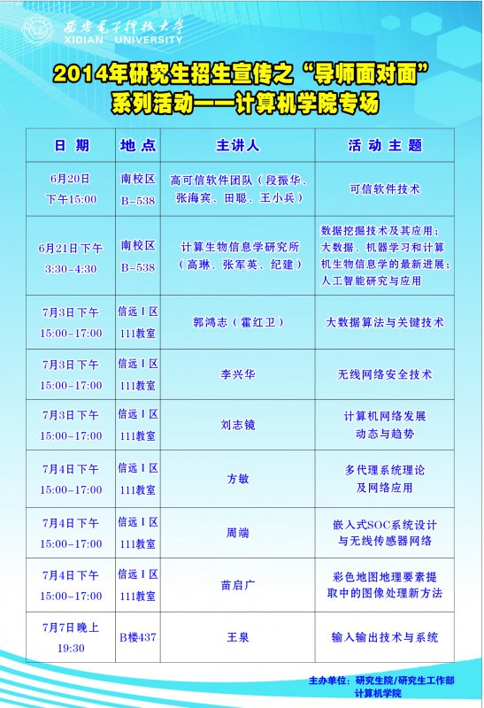 计算机学院导师面对面活动日程安排