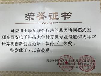 3.研究所师生团队研发的《可应用于癌症联合疗法的基因协同模式发现》系统,在kaiyun登录中国入口登录计算机专业设置60周年之计算机创新创业论坛上,获得貮等奖。