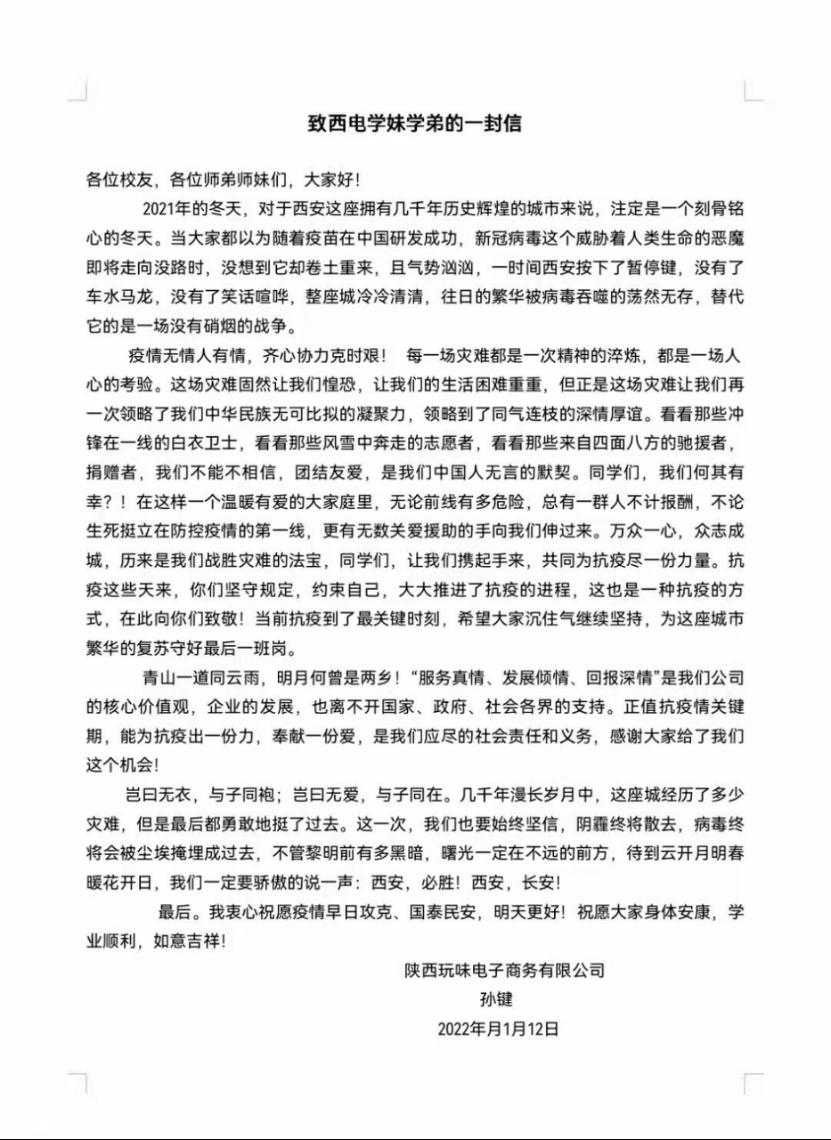 附:孙键致西电学弟学妹的一封信