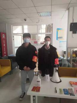 党支部预备党员任腾宇同学也第一时间在南校区报名参加了志愿者,“在这个关键时刻,我深知作为一名预备党员的责任,所以尽力贡献一份微薄的力量。”任腾宇负责海棠七号楼学生出入宿舍楼的检查,同时帮助协调有必要生活需求的同学。虽然工作任务不多,但他在寒冷的宿舍门口站立四个多小时,仍一直保持着坚定的眼神与负责的工作态度。任腾宇说:“我们尚且如此,在外的医护人员只会更加辛苦。”他还观察到楼层大厅循环播放着防疫标语,其中“坚守城邦”格外醒目,这也让任腾宇的心中更加明白:“是啊,每一个人都在努力守护着,守护着自己的家园。”