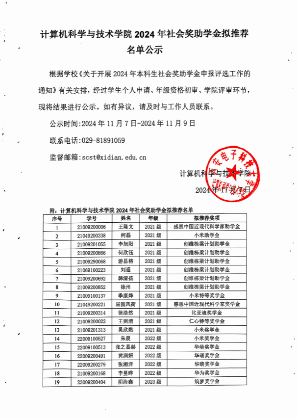 kaiyun登录中国入口登录2024年社会奖助学金拟推荐名单公示