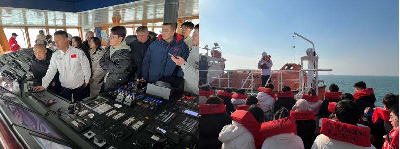 “东方红3”船是我国自主创新研发的新一代深远海综合科学考察实习船,也是目前全球静音科考船,可开展高精度的全海深和空间一体化的海洋综合科学考察。为落实德智体美劳“五育并举”,本次活动在思政教育的基础上引入实践教育,在科考船员的指导下学院一行通过学习海洋调查的基本知识、开展海洋安全应急演练、观摩海洋调查仪器设备实操,深入感受着大国重器上先进的海洋科考设施和海洋科考工作者身上朴素的爱国报国之行。