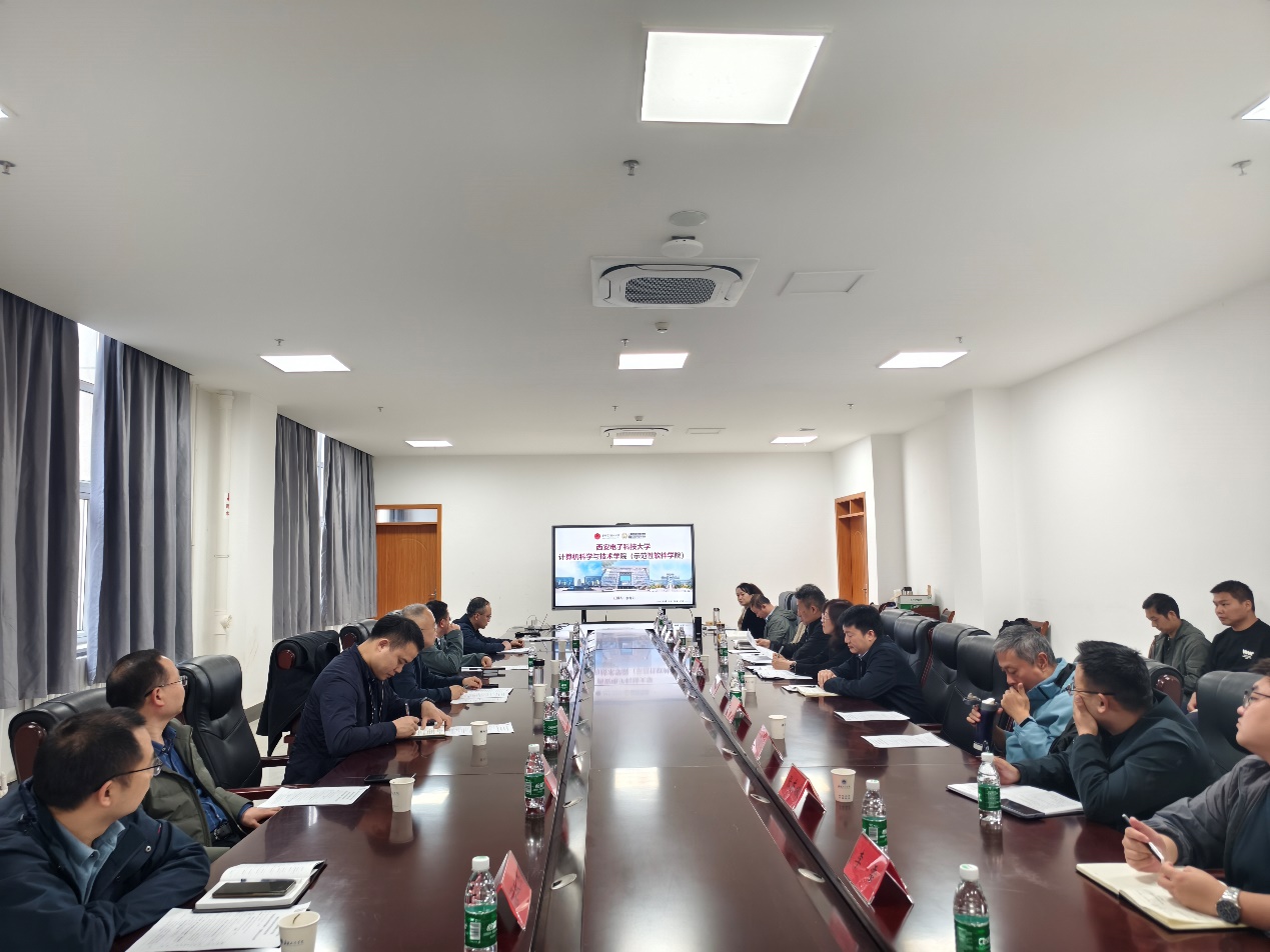 西电计科院党委书记李青山感谢对学院一行的热情接待,详细介绍了学院党委和行政工作成效,分享了本硕博师联合党支部育人模式、基层组织架构优化、“三系”精神文化育人和援建中石大(北京)克拉玛依校区等特色工作。李青山表示,两校同为服务国家战略且办学优势互补,此行希望能进一步了解需求,充分交流,精准对接,不断深化两院交流与合作,促进党建与业务深度融合。