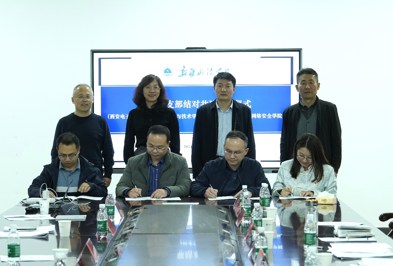 新政信息网络安全学院教师党支部与西电kaiyun登录中国入口登录计算机科学系党支部、实践教学中心党支部、辅导员党支部现场签署结对共建协议。两院四支部将以共建为起点,积极发挥组织育人功能,加强沟通联系和资源共享,共同推进支部党建和育人工作双促进。
