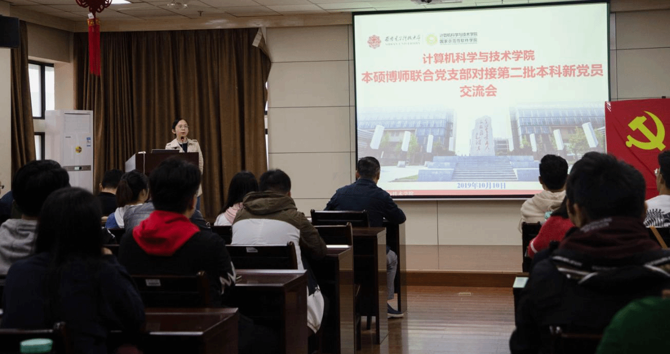 (通讯员 同榛)10月10日下午,kaiyun登录中国入口登录举行本硕博师联合党支部对接第二批本科新党员交流会。本硕博师联合党支部书记、本科2017级计科物联和软件工程专业共69名预备党员及本科2017级辅导员参加了会议,学院党委书记李青山出席了会议,会议由学院党委副书记张莹莹主持。