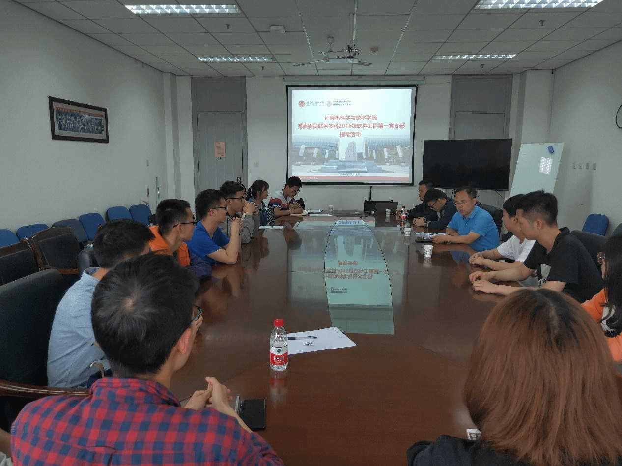 (通讯员 同榛)为贯彻落实“支部建设年”的工作要求及学校支部建设相关文件精神,密切党委委员与学生党支部的联系,加强对学生党支部工作的了解、指导和检查,5月28日下午,学院党委书记李青山与联系党支部本科2016级软件工程第一党支部在南校区G楼514室进行了亲切座谈并指导党支部工作。本科2016级软件工程第一党支部的党员参加了本次会议,会议由党委书记李青山主持。